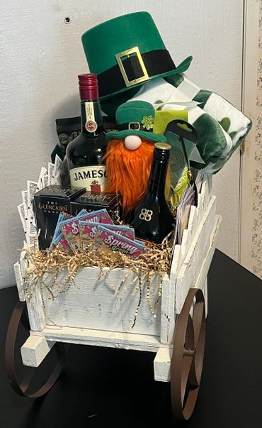 ...includes $100 lotto scratchers (chance to win $20,000!), $100 Hitching Post gift card, Jameson Whiskey, Bailey's Irish Cream, misc chocolate and snacks... see basket photo and full list below.